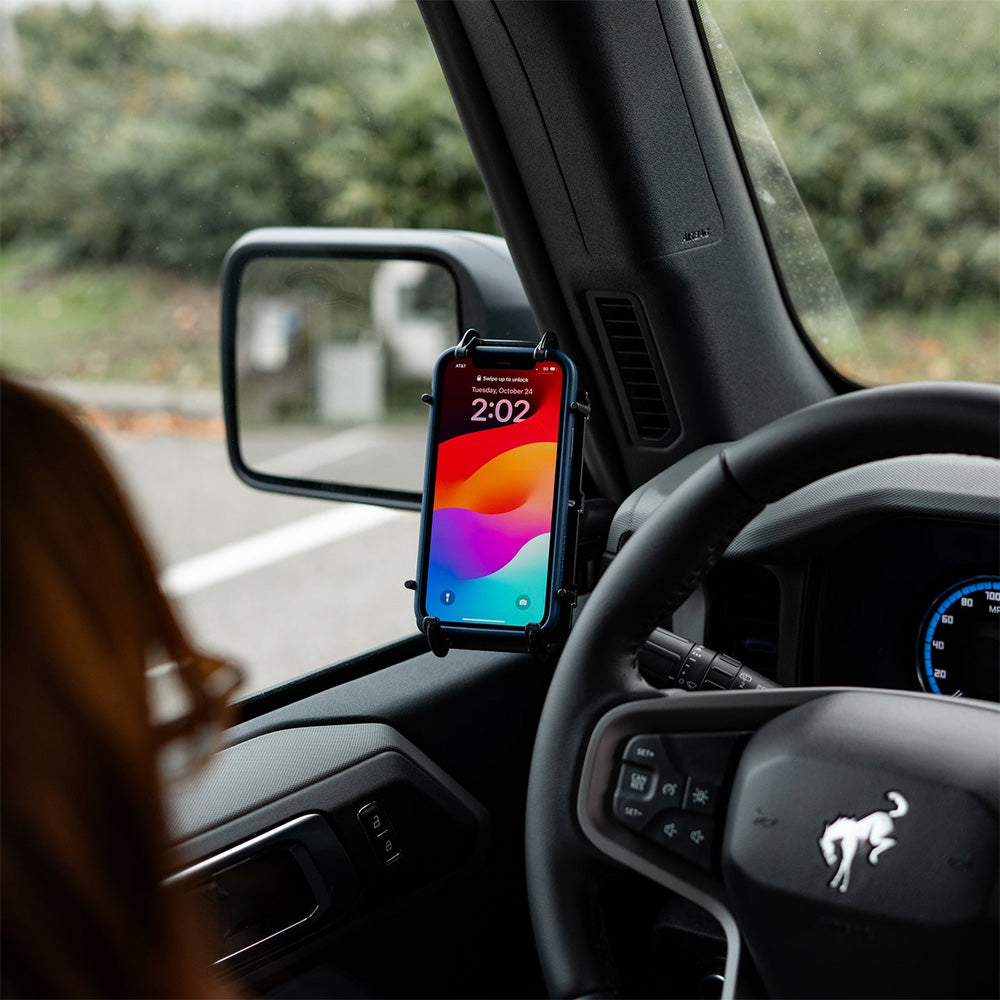 The RAM® Quick-Grip™ XL Phone Mount with Grab Handle M6 Bolt Base (RAM-B-186-M6-PD4U) is easily installed on any vehicle's grab handle that features an M6 threaded bolt. This solution includes a medium-length double socket arm, the popular spring-loaded RAM® Quick-Grip™ holder, and a RAM® ball base. With a hollow center, users can feed the 6mm bolt or smaller to screw into your vehicle's grab handle for a stable mounting base with no drilling required. Keep the windshield clean and the phone mount out of the way with this grab handle mount for phones, GPS devices, and more!