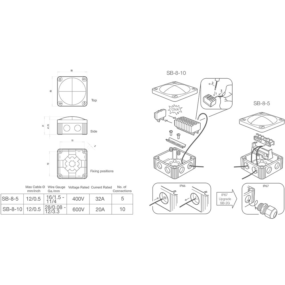 This Cable Seal upgrade kit is available to upgrade your Junction Box to IP67. The IP67 cable seals screw into the boxes at the cable entrance points and can accept cables from 0.15” to 0.48" (4 to 12mm).