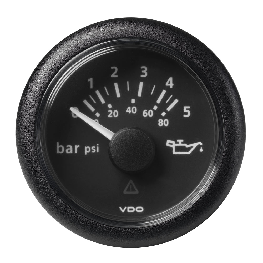 52 MM (2-1/16") ViewLine Oil Pressure Gauge 5 Bar/80 PSI - Black Dial & Round Bezel